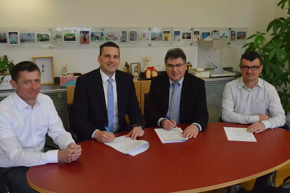 Bürgermeister Martin Blessing, Verbandsvorsitzender der Schmerachgruppe und NOW-Geschäftsführer Dr. Jochen Damm unterzeichneten am 9. März 2020 im Ilshofener Rathaus einen Vertrag zur technischen Betriebsführung.