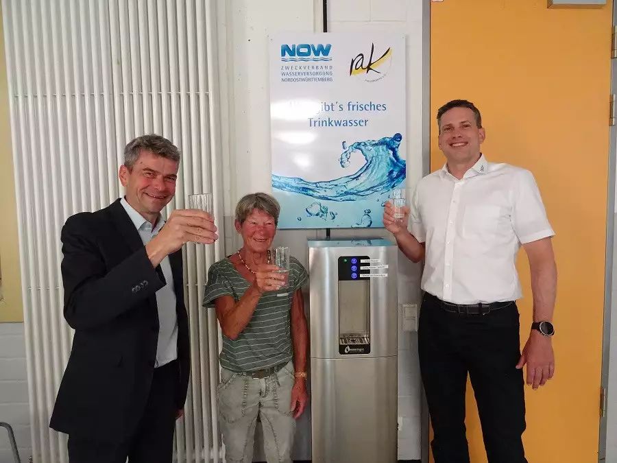 Nicht nur im Sommer spielt ausreichendes Trinken eine entscheidende Rolle für das Wohlbefinden und die Leistungsfähigkeit von Schülerinnen und Schülern. Dabei sollte vor allem auf Wasser, statt auf Cola oder andere zuckerhaltige Getränke zurückgegriffen werden. Um dies zu ermöglichen, verfügt die die Realschule am Karlsberg seit Mai 2023 über einen Trinkwasserspender, bei dem sich die 750 Schülerinnen und Schüler in den Pausen kostenlos mit frischem Wasser versorgen können. Unterstützt wurde der Kauf des Wasserspenders maßgeblich durch die NOW, die die Hälfte der Anschaffungskosten trug.